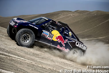 Hoy, el español Nani Roma ha visto cómo su Mini se quedaba atrapado durante más de 30 minutos en la arena del kilómetro 71 y en ese mismo lugar Giniel de Villiers perdía diez. Sin embargo, el 50% no solo muestra las victorias de Al-Attiyah, sino también el estado en el que se ha quedado su equipo tras sufrir un duro golpe: solo permanece en la carrera uno de los dos autos que partían de Lima. El motor del buggy de Carlos Sainz ha aguantado hoy solo 179 kilómetros de carrera. Tras un año de ausencia de la prueba, “El Matador” se retira del ruedo llevándose consigo una victoria de etapa y una experiencia como piloto. Seguro que no es la última vez que vemos al español participar en la aventura del Dakar.